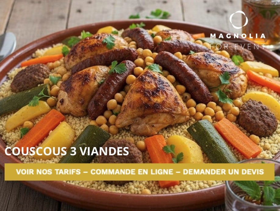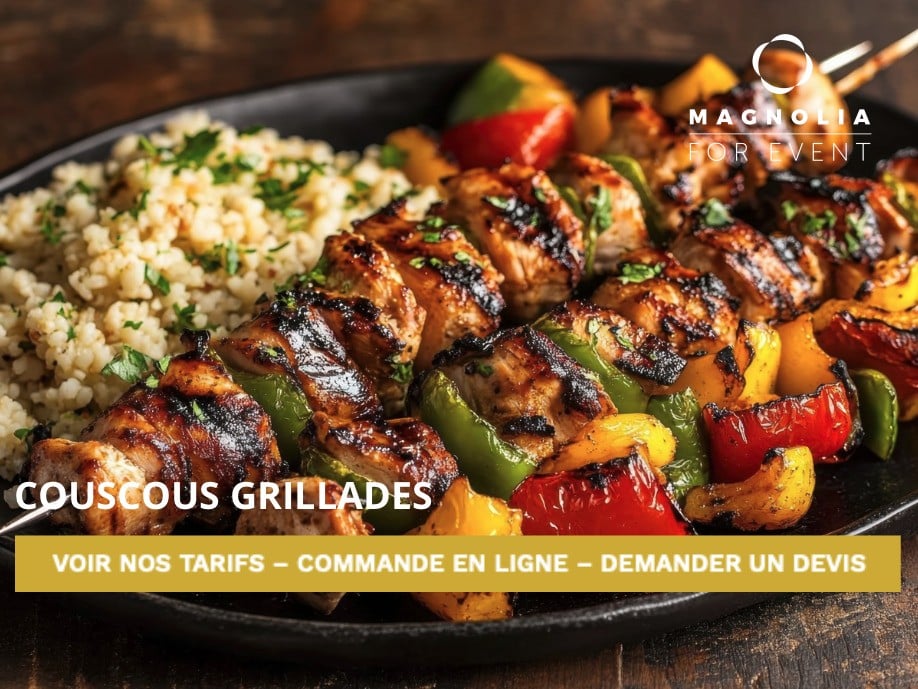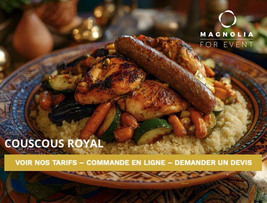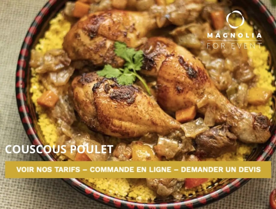 Du traditionnel couscous royal aux versions au poulet, à l’agneau, aux merguez ou encore végétariennes, chaque plat est mijoté lentement afin de révéler toute la richesse des épices et la finesse de la semoule. Nos couscous sont pensés pour satisfaire toutes les envies, que vous soyez amateur de recettes classiques ou à la recherche de nouvelles découvertes gourmandes. Avec Magnolia, retrouvez le goût du fait maison et le plaisir d’un couscous savoureux, préparé comme à la maison et livré avec soin pour régaler tous vos moments de partage.