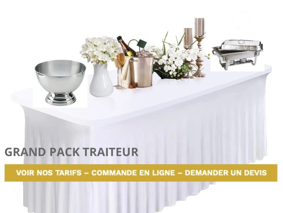 Livraison, mise en place et prêt du matériel, une personne de service pour installer le buffet, et la récupération du matériel par notre service de livraison..