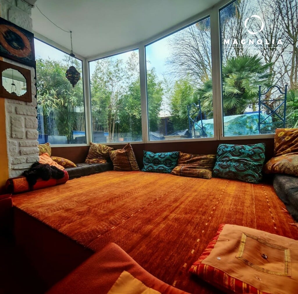 Située à Champigny-sur-Marne, la Villa Palmier est une demeure d’exception alliant architecture contemporaine et dépaysement tropical. Ce lieu signature, aux teintes terracotta et aux volumes baignés de lumière, est l’écrin idéal pour vos événements et projets créatifs.