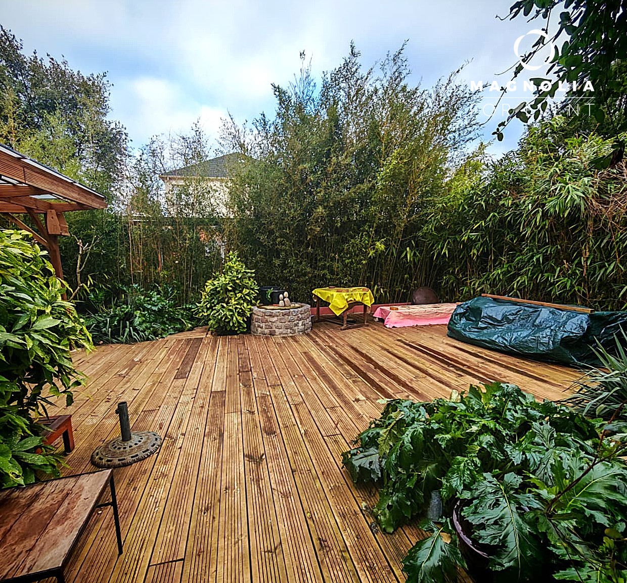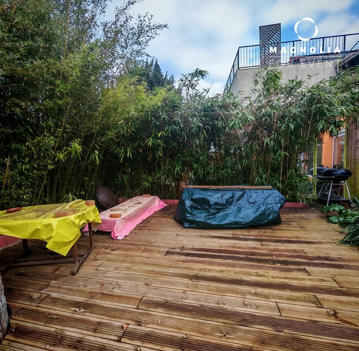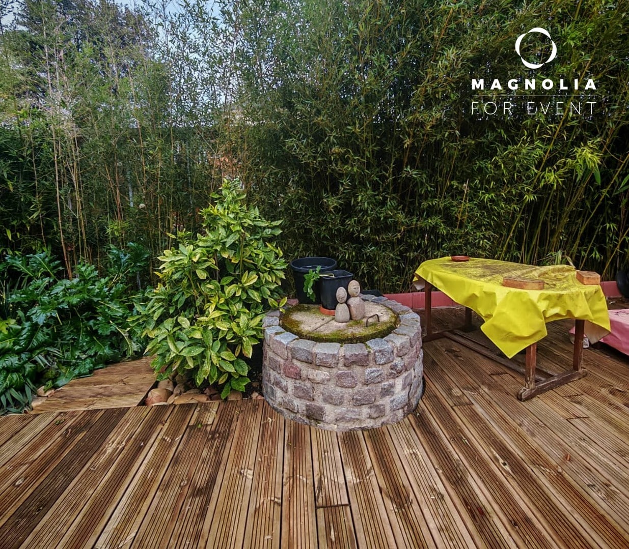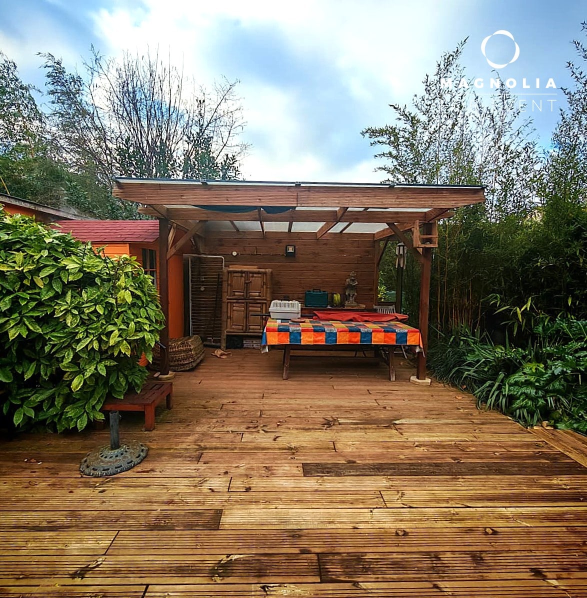 Partagez de merveilleux moments festifs sur ces 2 espaces extérieurs au sol en bois exotique entourée de palmiers et de bambous denses pour une intimité totale et une esthétique "voyage".