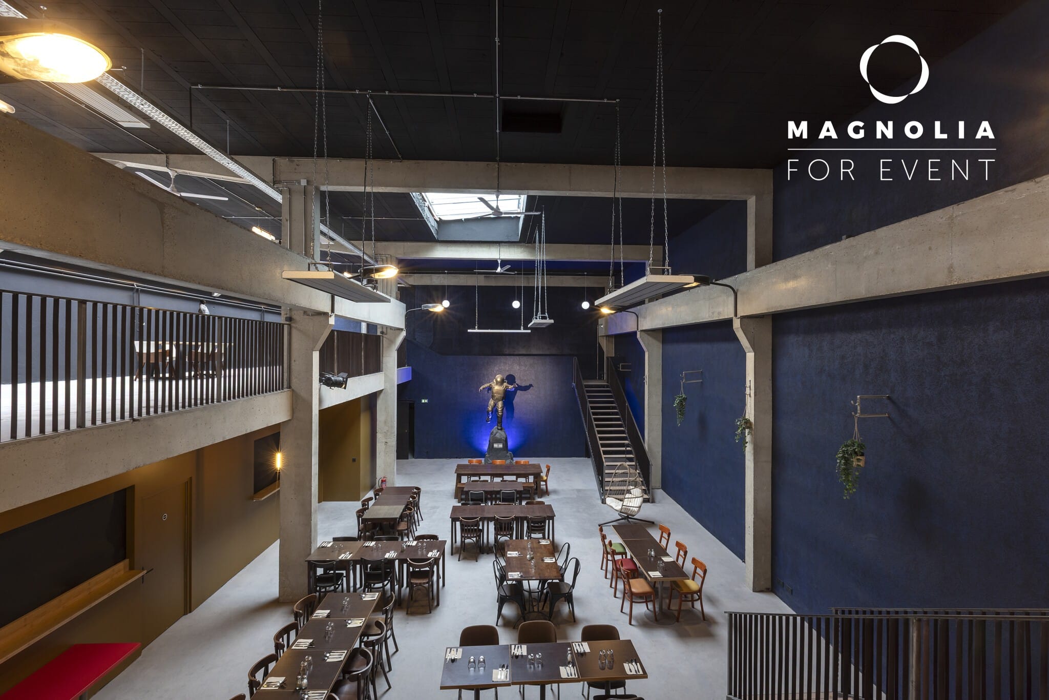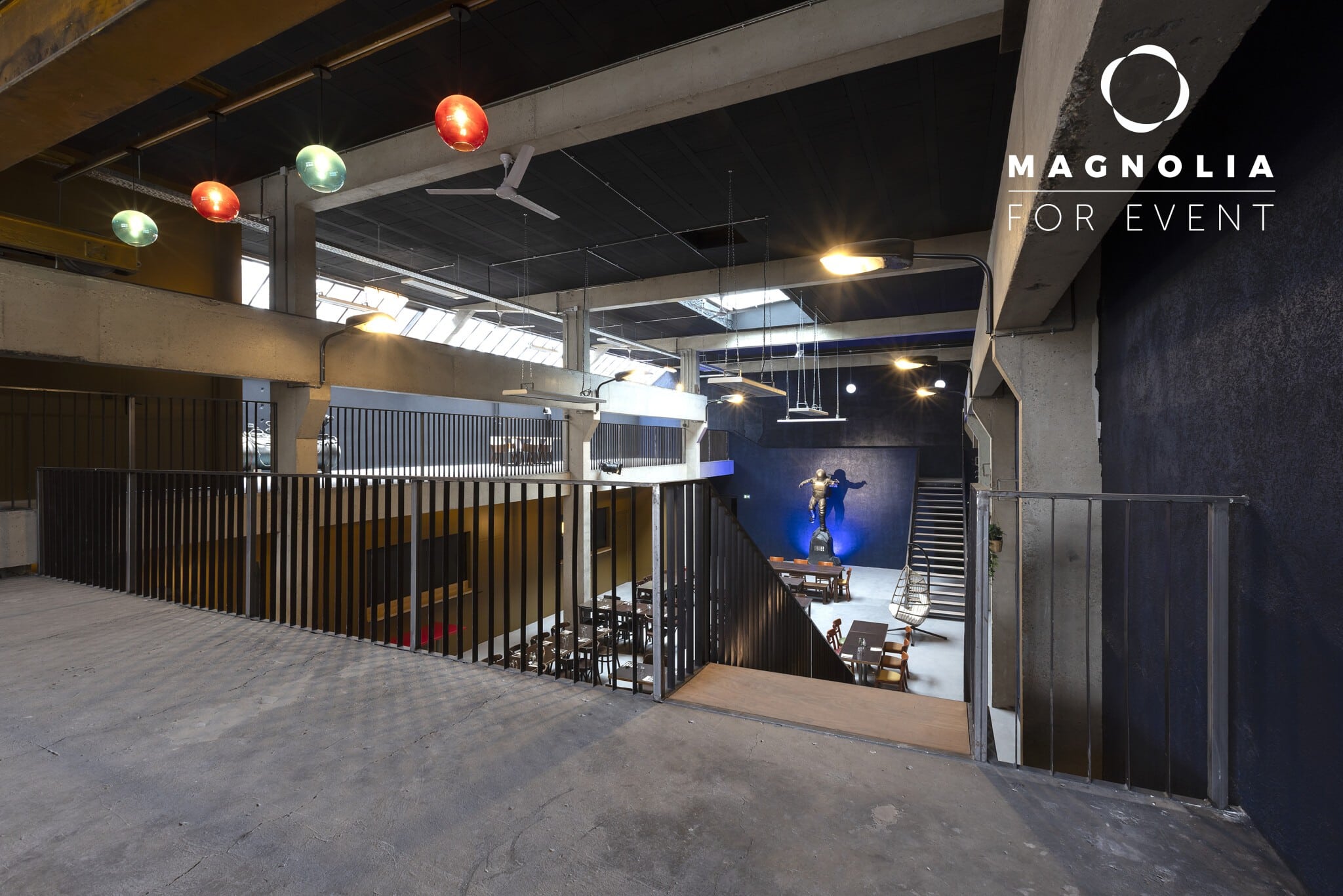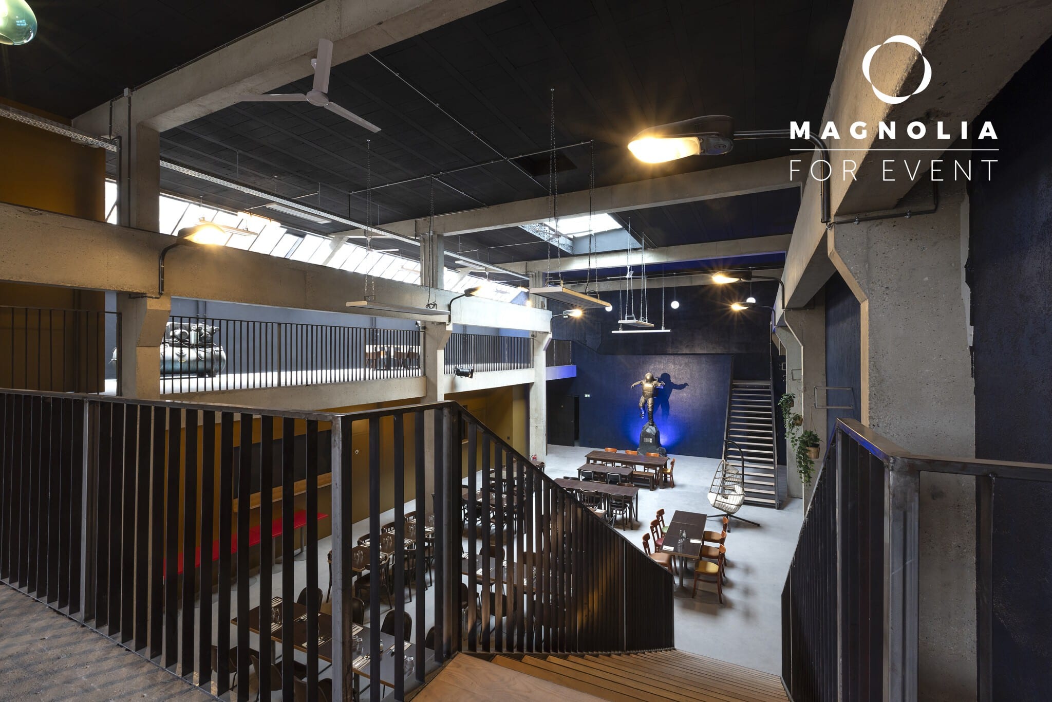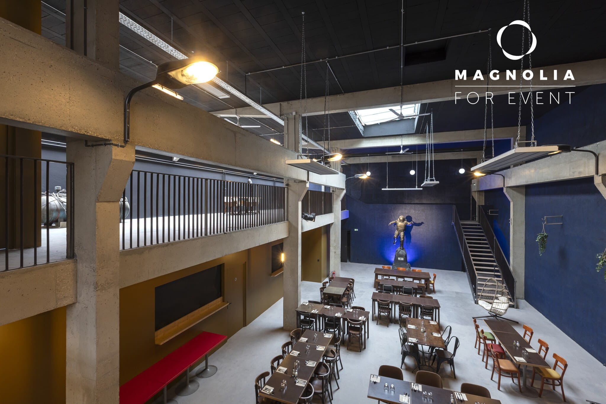 Le Loft du Cosmonaute, avec ses 400 m² et sa superbe mezzanine, offre un cadre spectaculaire et spacieux pour organiser une réception, une soirée privée ou un événement professionnel dans une atmosphère à la fois moderne et originale.