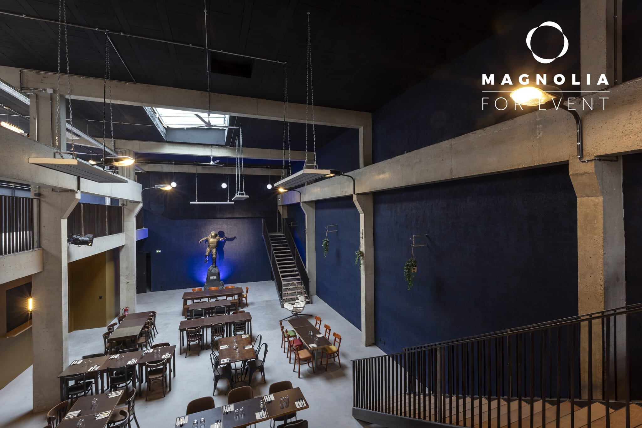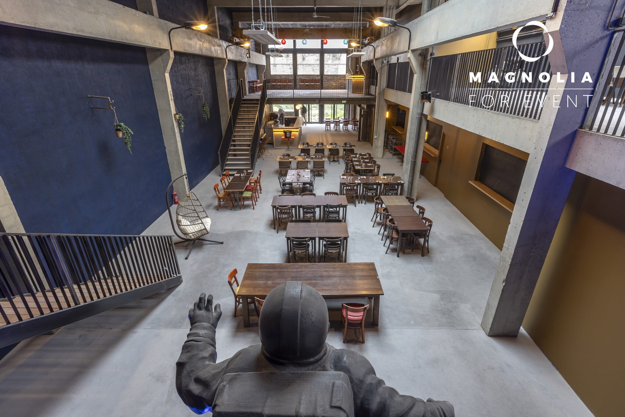 Sans vis-à-vis et parfaitement adapté aux événements festifs, le Loft du Cosmonaute permet de profiter pleinement de la musique et de l’ambiance sans nuisance sonore pour le voisinage. Il peut être privatisé dans sa totalité pour des événements jusqu’à 400 personnes, ou uniquement au rez-de-chaussée pour des réceptions de 150 à 200 invités. Un lieu totalement atypique qui marquera les esprits et fera le bonheur de vos invités.