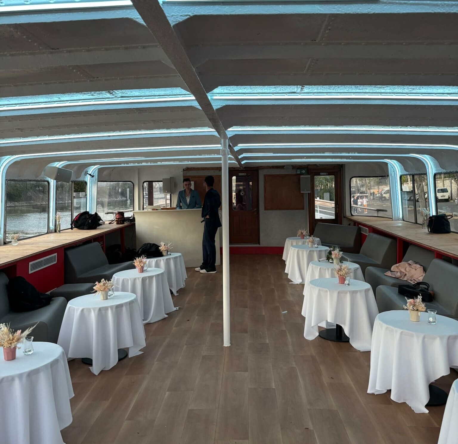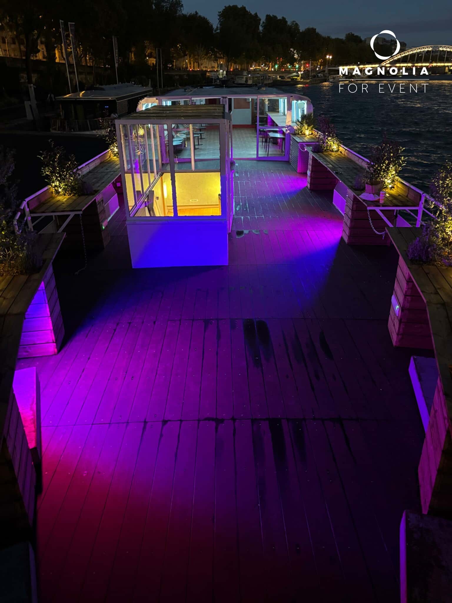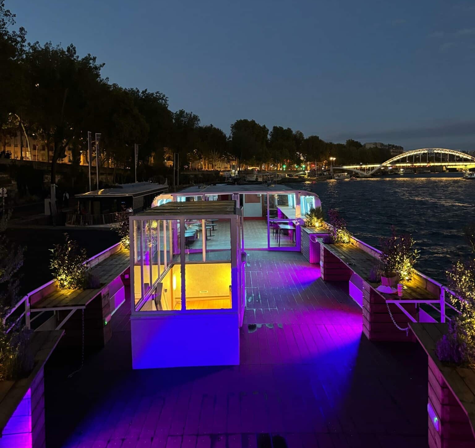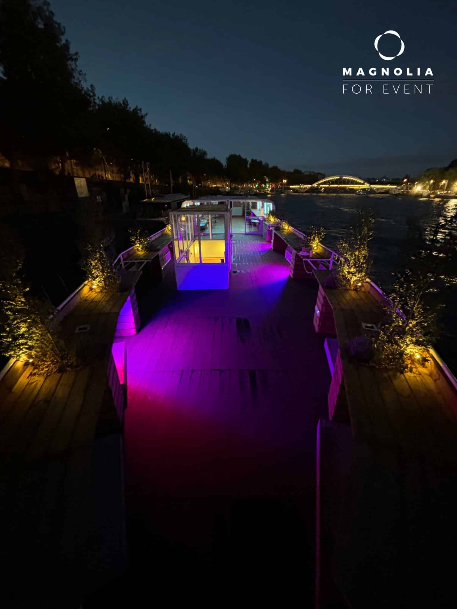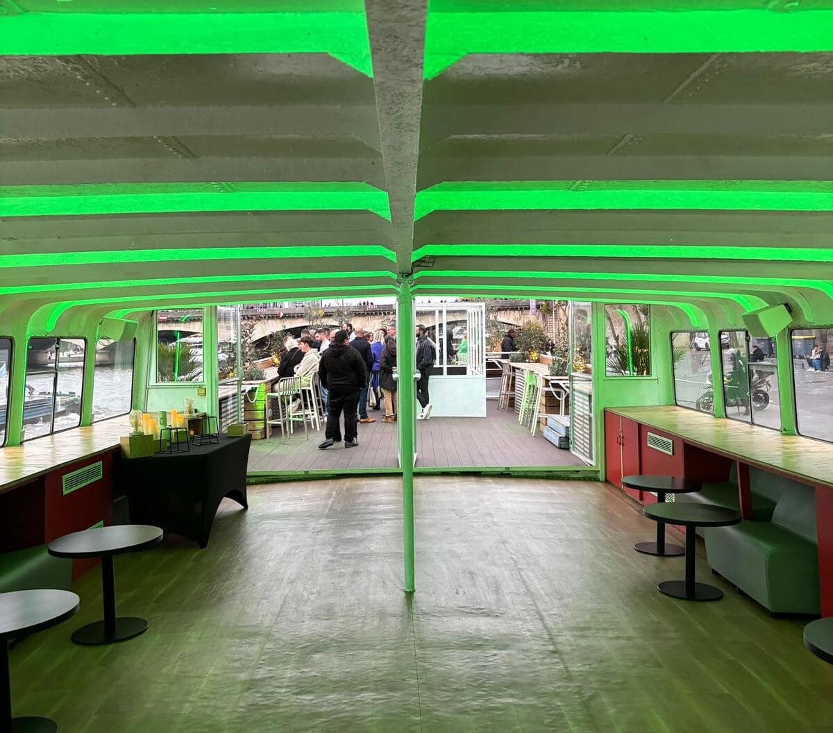 Amarrée au Quai Saint-Bernard, à proximité de la bibliothèque François Mitterrand, cette péniche offre un cadre exceptionnel pour vos séminaires, conférences et réunions d'affaires.