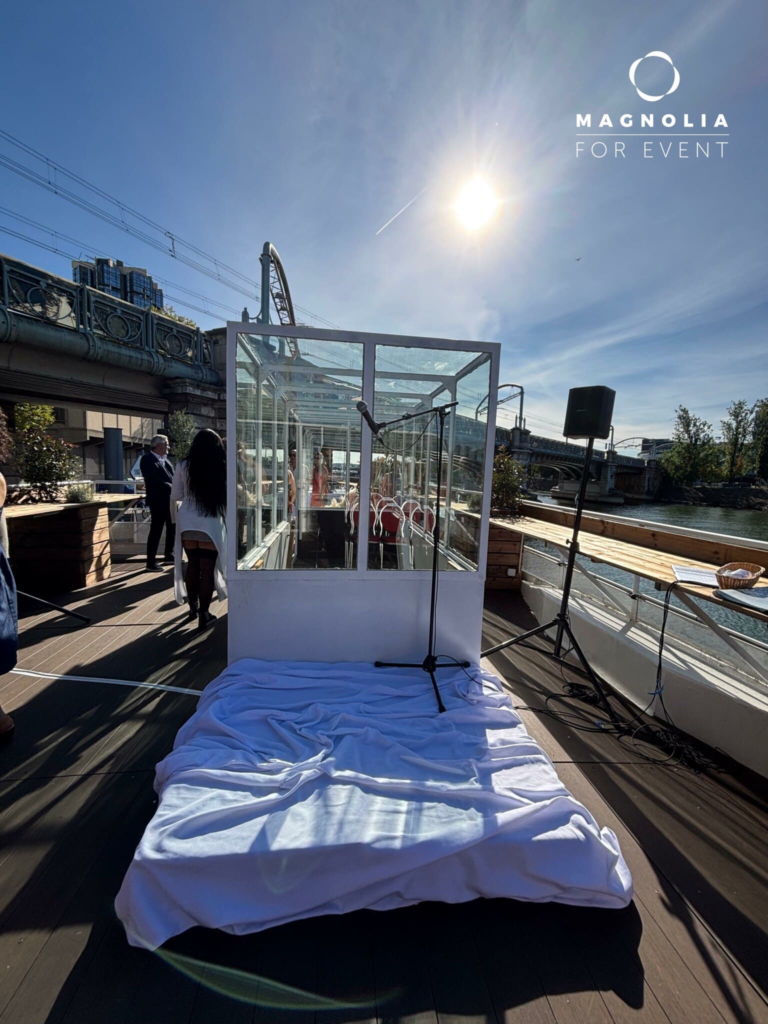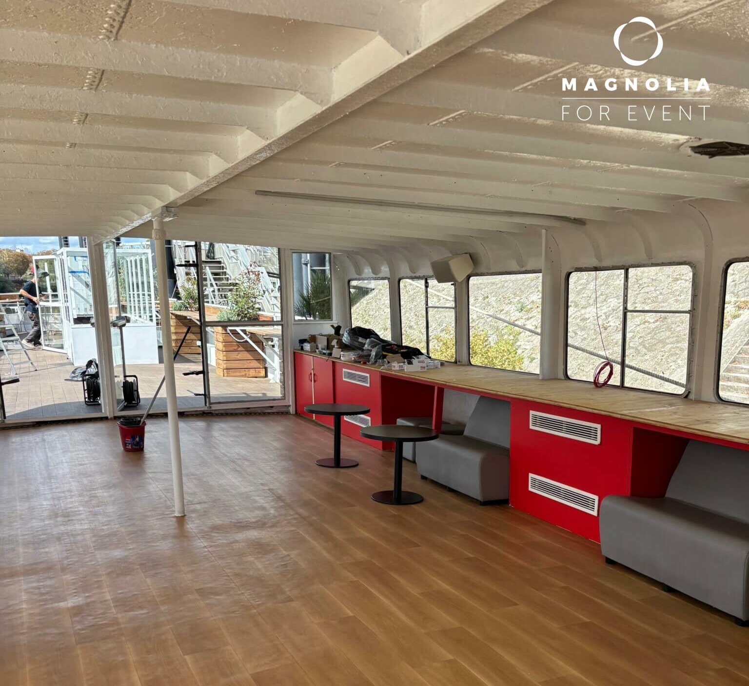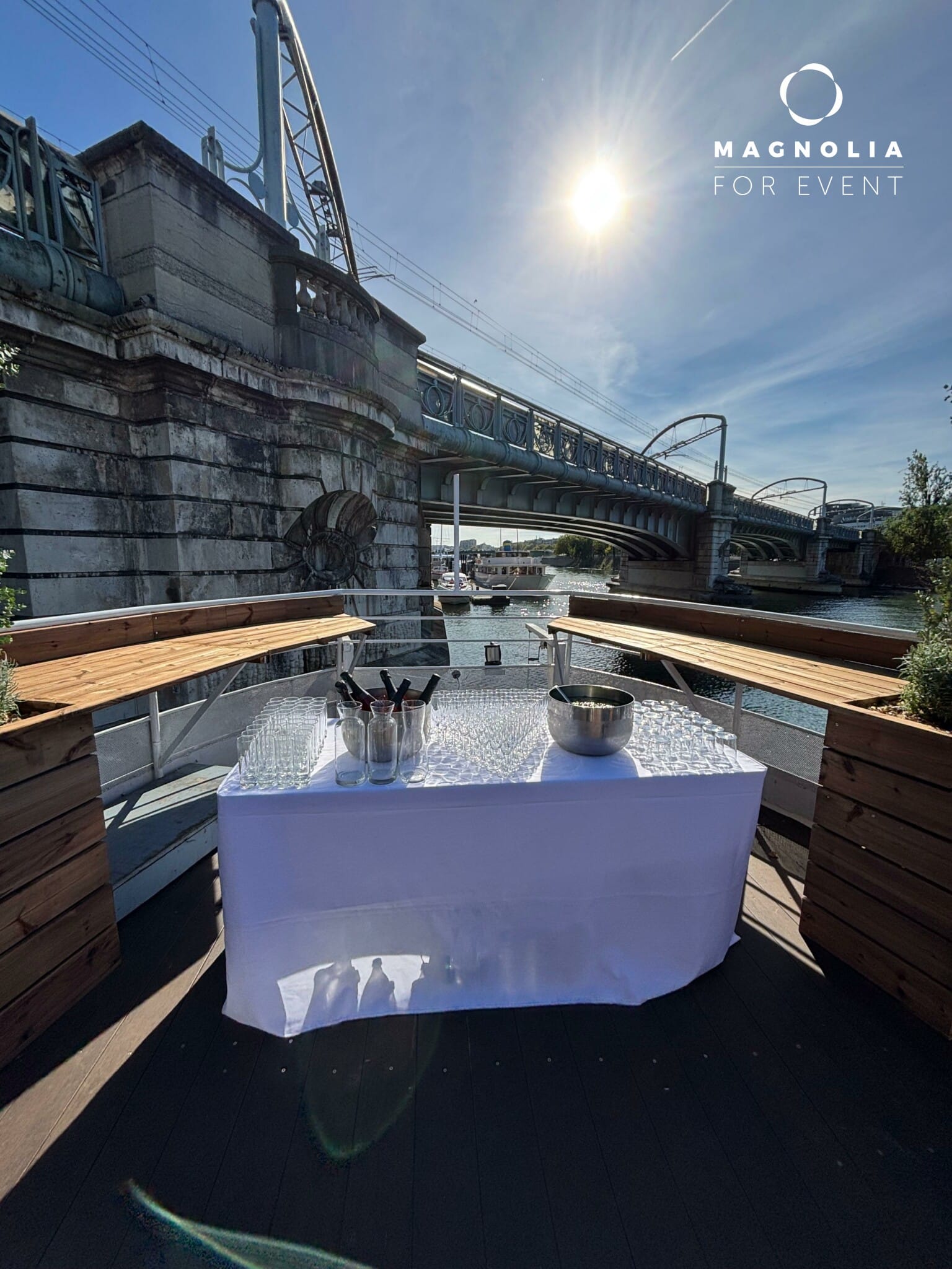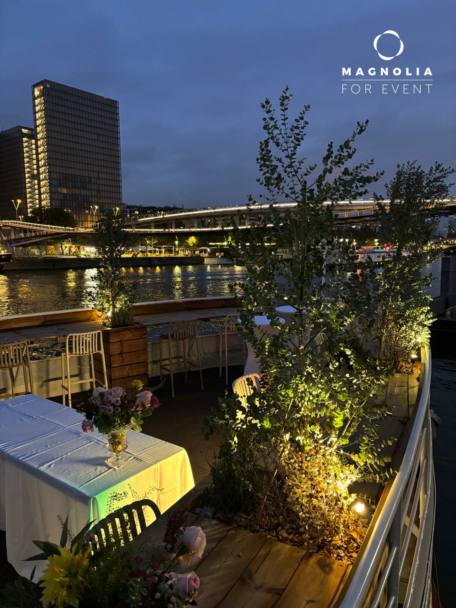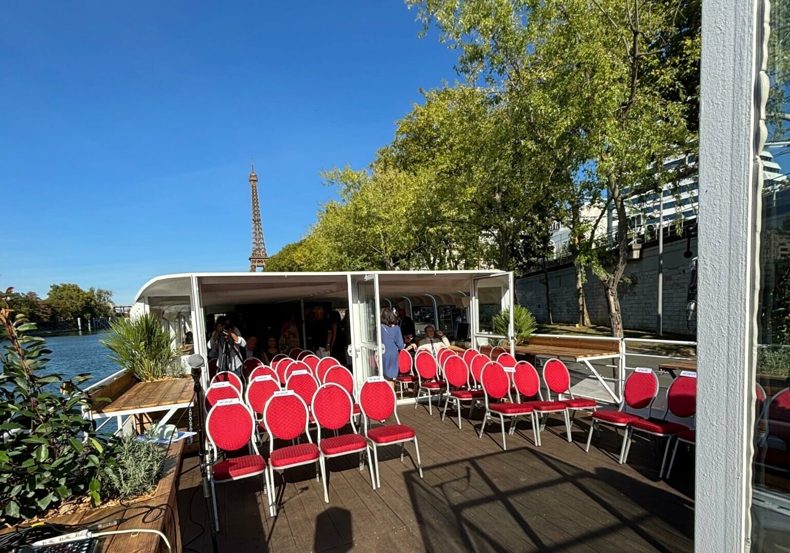 Amarrée au Quai Saint-Bernard, à proximité de la bibliothèque François Mitterrand, cette péniche offre un cadre exceptionnel pour vos séminaires, conférences et réunions d'affaires.