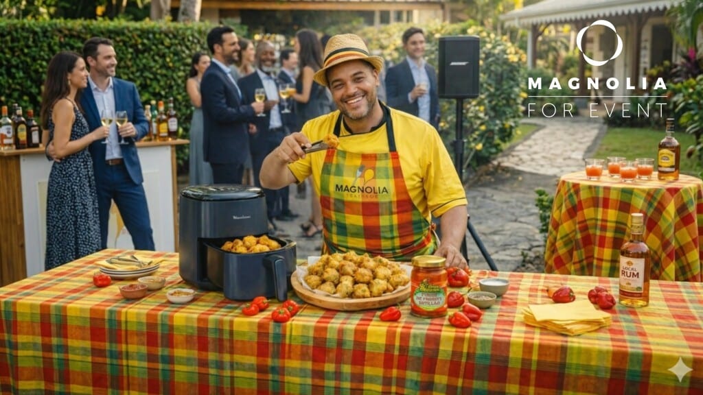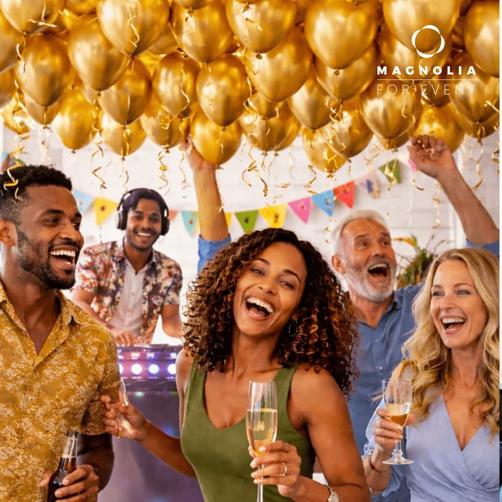 Faites de votre anniversaire un moment unique avec notre formule tout compris à 109€ TTC par personne. Profitez du Grand Cocktail Magnolia de 22 pièces, mêlant 16 bouchées salées raffinées et 6 douceurs sucrées. Boissons incluses : planteur, vin, champagne et softs, avec verrerie et matériel fournis. 100 ballons à l’hélium et un service dédié pendant 7h assurent une ambiance festive. Un DJ professionnel anime votre soirée avec playlist personnalisée et matériel complet. Cette prestation clé en main garantit convivialité, organisation fluide et souvenirs mémorables. Nous vous accompagnons pour créer un événement parfaitement réussi selon vos envies.
