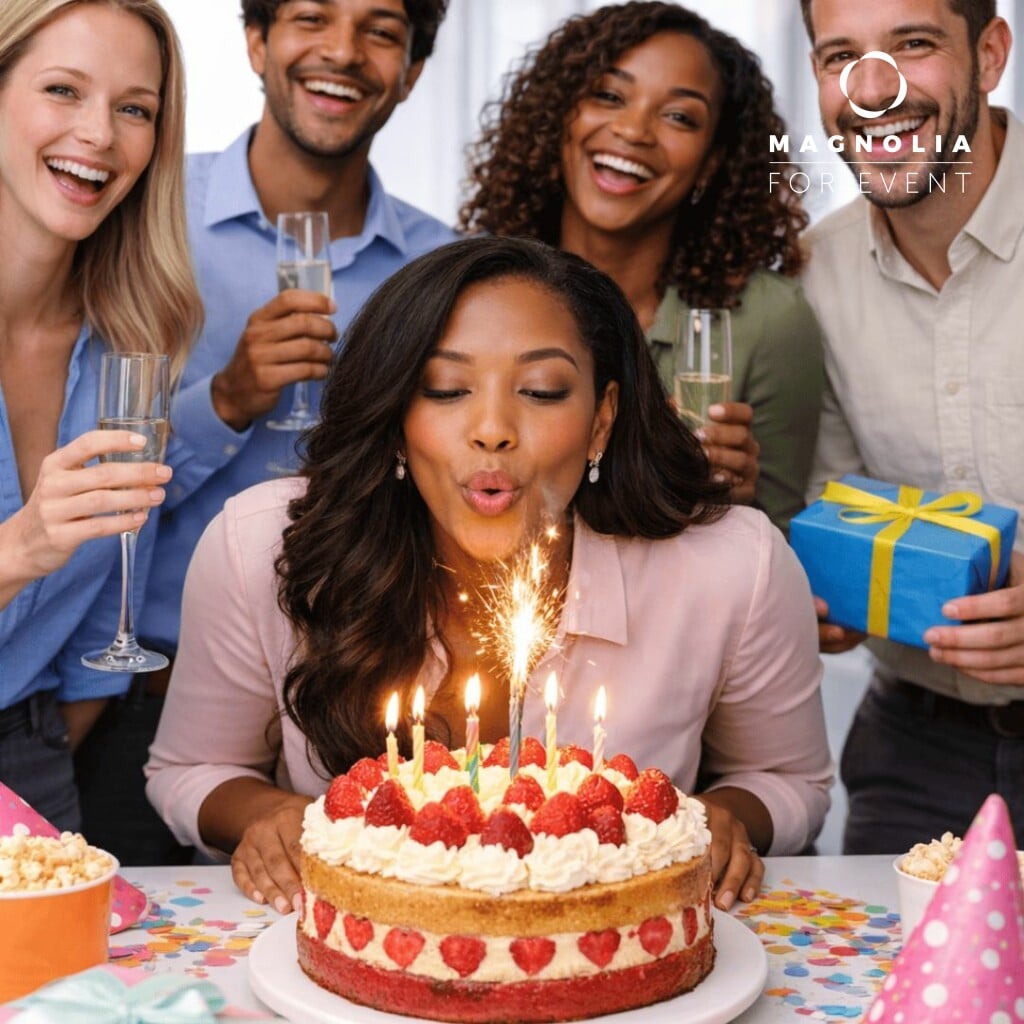 Offrez un anniversaire inoubliable avec notre formule tout compris Anniversaire & Karaoké dès 79€ TTC par personne (minimum 25). Profitez d’un cocktail Magnolia de 15 pièces, d’un gâteau au choix avec bougies et fontaines, et de boissons complètes (planteur, vin, champagne, softs). Inclus : verrerie, matériel éco-responsable, 50 ballons hélium et un service dédié pendant 7h. Côté ambiance, un animateur karaoké avec matériel professionnel et 30 000 titres assure 3h de divertissement. Cette prestation clé en main garantit convivialité, organisation fluide et souvenirs mémorables pour tous vos invités.